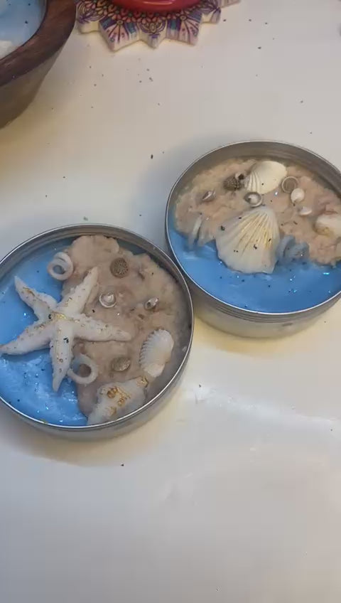 Capture the serene essence of the shore with this elegantly crafted Beach Theme Tin candle.