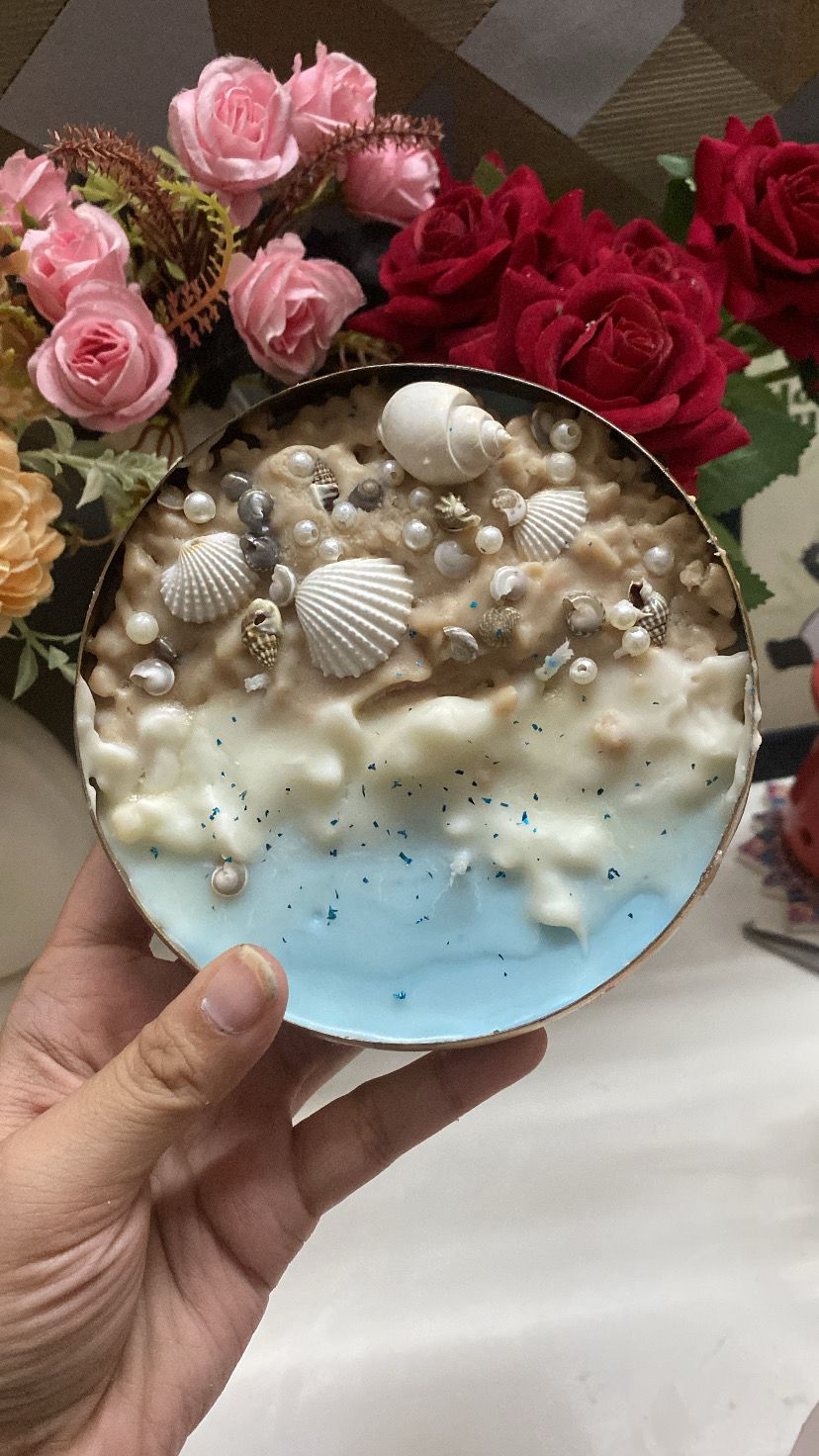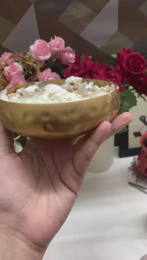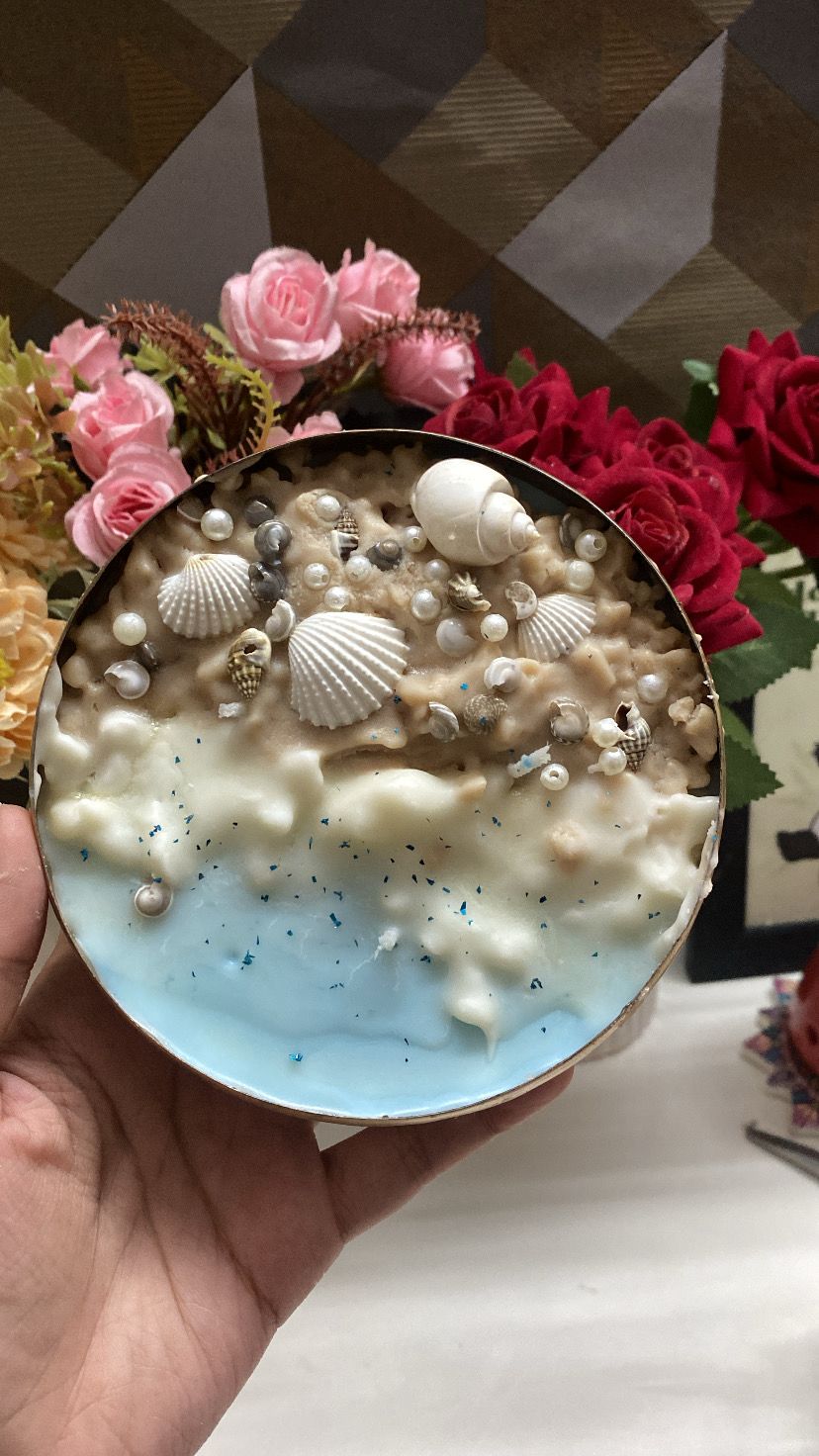 Experience the serene essence of coastal calm with the elegant Beach Vibes in Golden Urli candle.