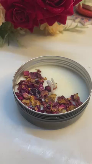 Experience timeless elegance with the Dry Petals Rose Tin candle, delicately blending floral notes in a sleek, reusable tin.