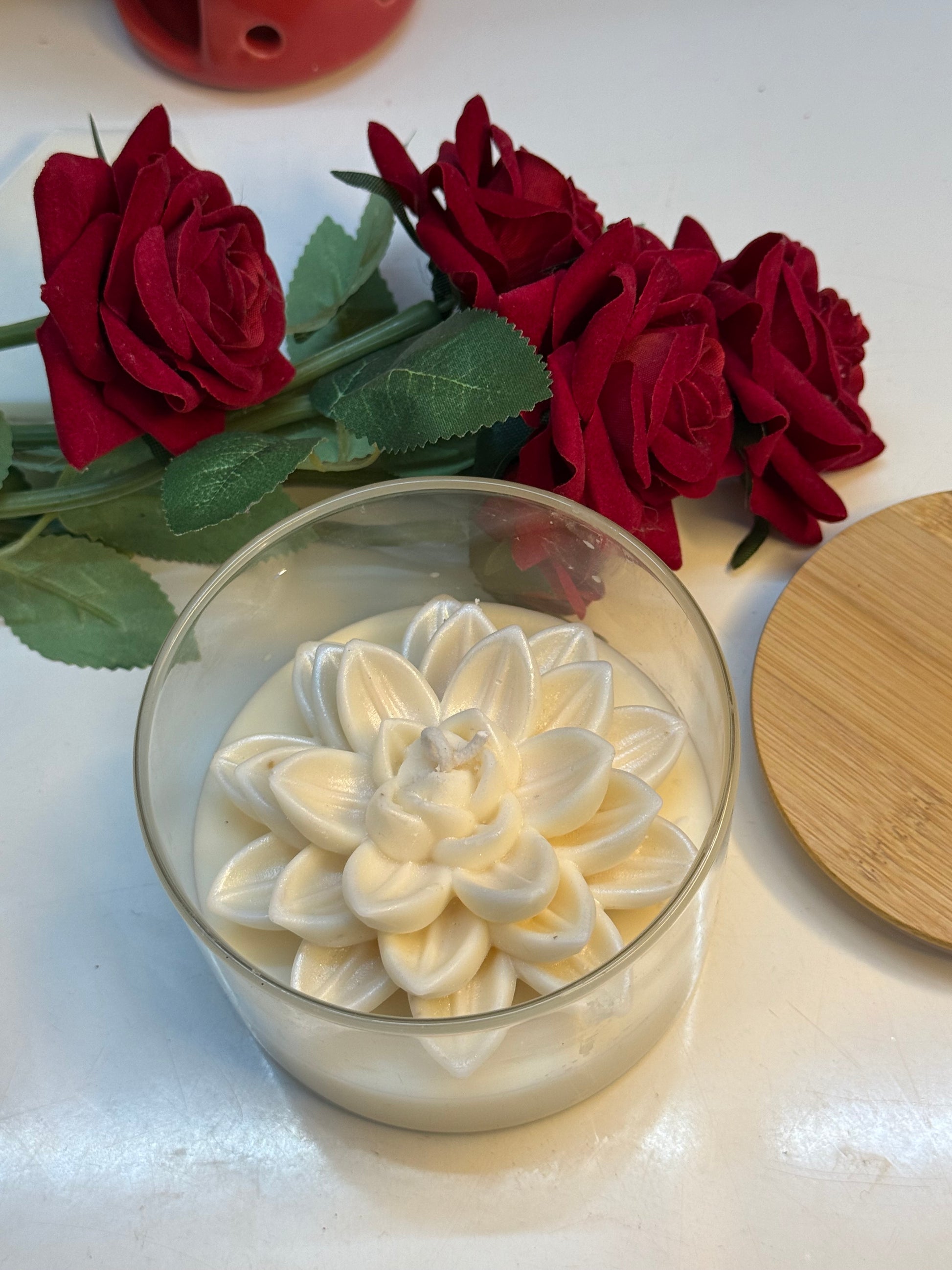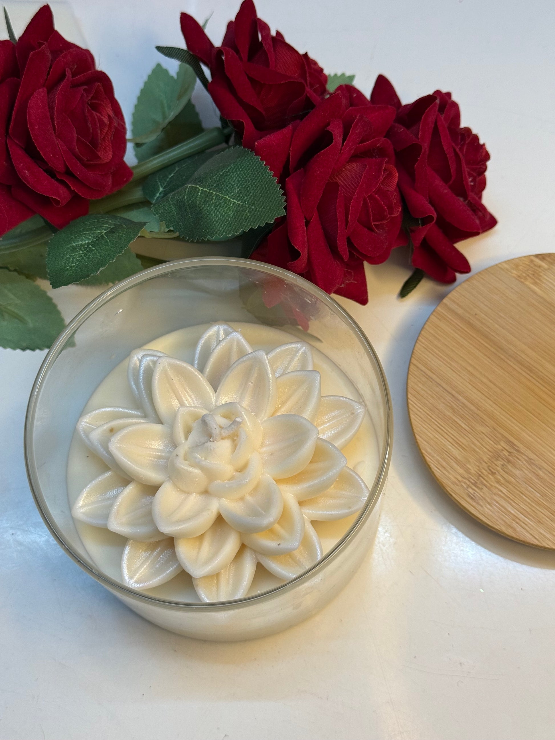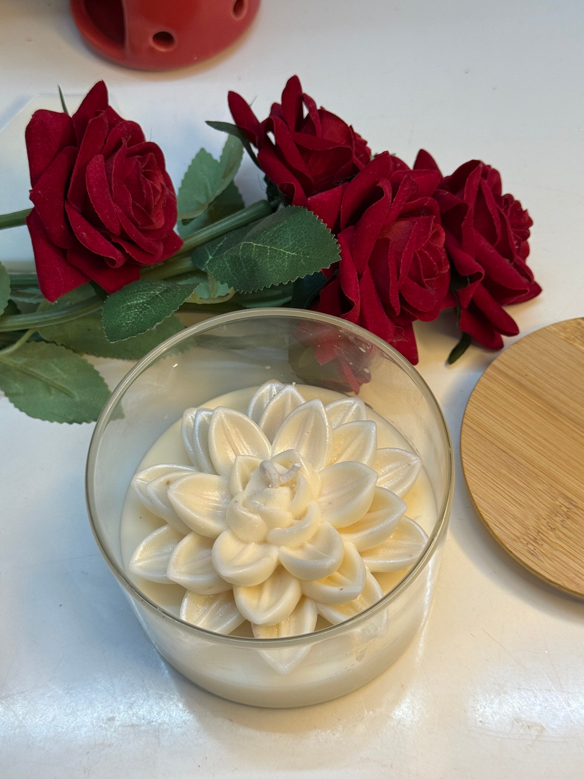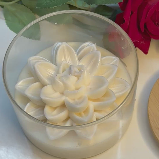 Light up your space with our Lotus cup candle. Its lotus-inspired design brings a sense of calm and serenity, while its warm glow adds a touch of coziness to any room. The perfect addition to your home decor or for a relaxing bath.